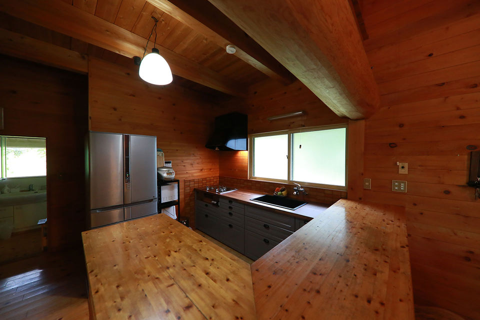 ウッドデッキ、BBQ台、薪ストーブ、キッチン、バスルーム、